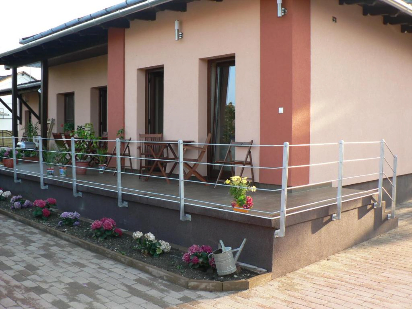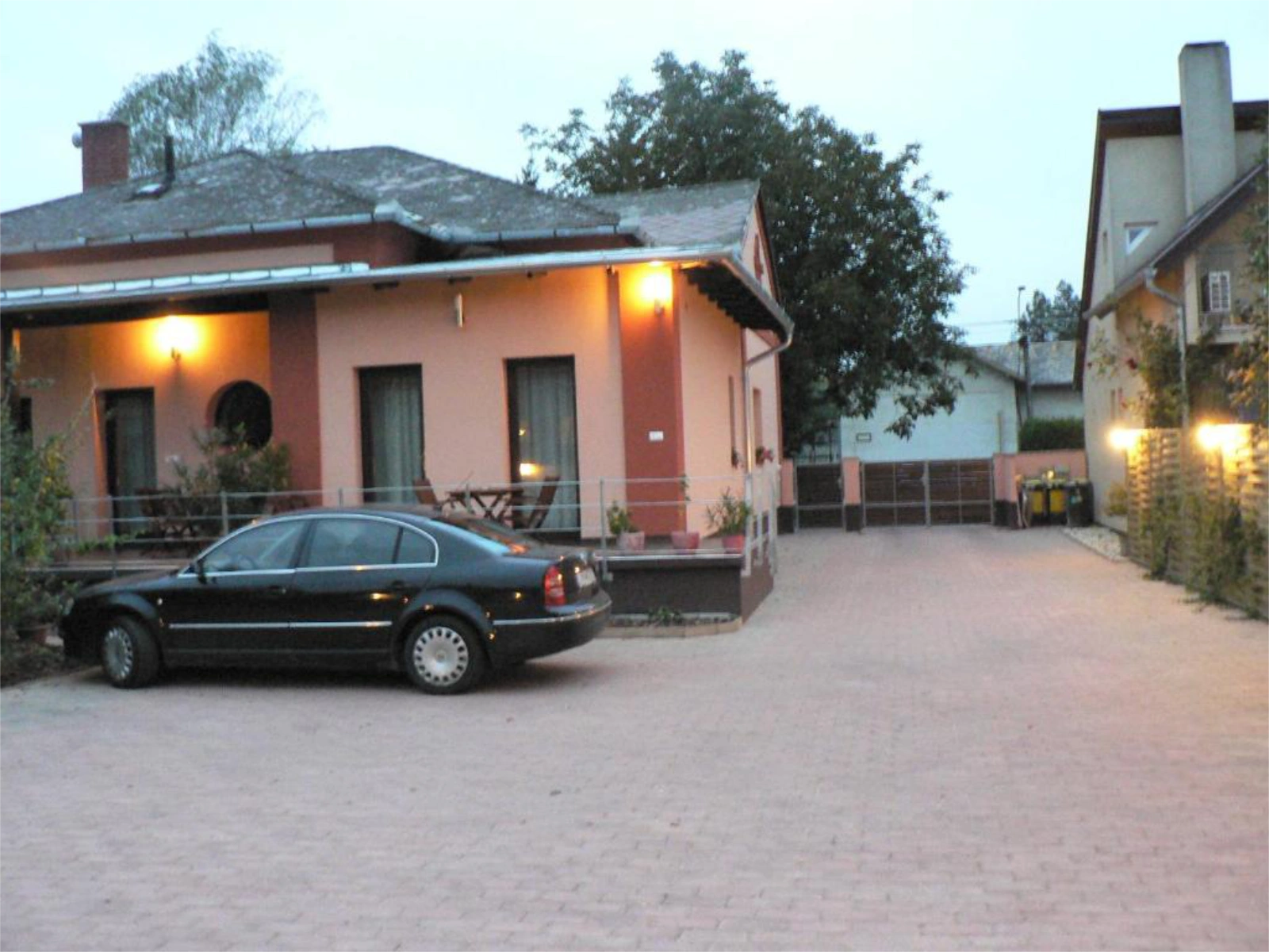 Külső: Udvarra néző, nem zárt előkert, fa kiülőpad